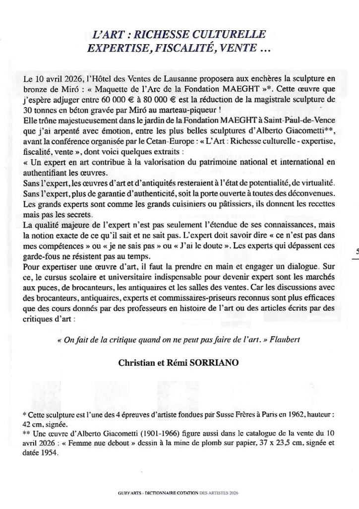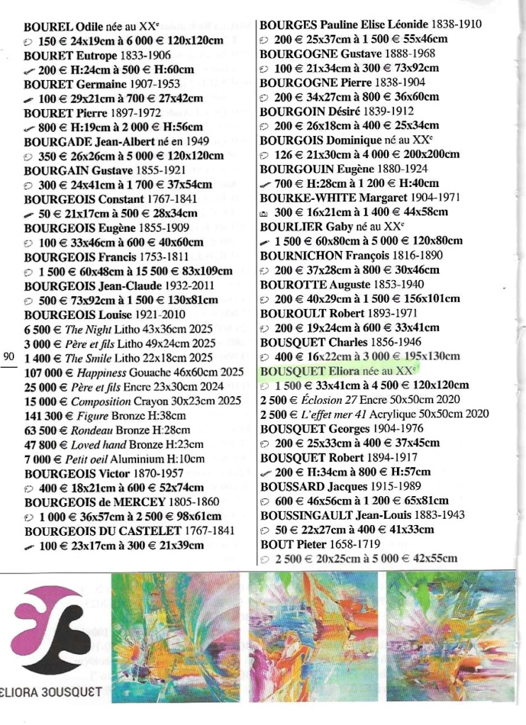 Dictionnaire de cotation des artistes 2026